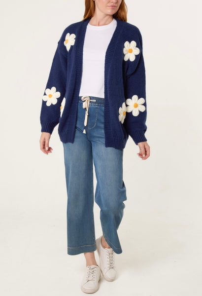 Fabulous edge to edge cardigan with stunning flocked daisy embellishments.