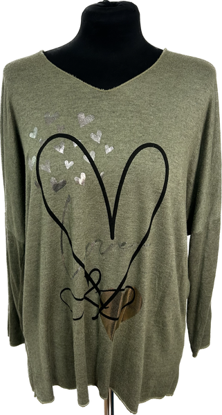 Gorgeous super soft fine knit jumpers with soft V neckline. Gorgeous foiled heart design and cosy long sleeves. Casualwears never looked & felt so good