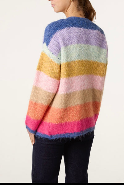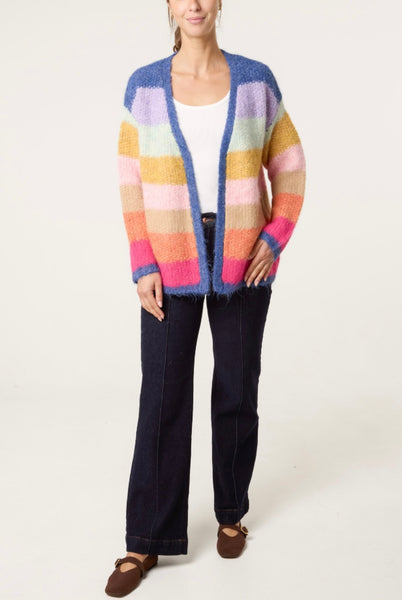 Wrap yourself in cheerful comfort with this eye-catching, plush rainbow knit cardigan. Featuring bold, multicoloured stripes that bring instant joy to any outfit, this piece is a true statement layer you'll reach for again and again.