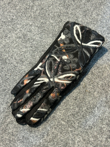 Add some stylish warmth to your outfit with these fabulous cosy fleece lined abstract flower design gloves
